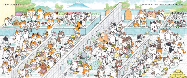 『100ぴきかぞく』には、それぞれ個性的な100匹の猫の家族が登場します。いつも転んだり、飲み物をこぼしたりしているドージ。救急箱や傘を持ち歩いているソナエ。どこでも何かを拾っているゲット。