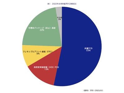 台湾の22年上半期(1~6月)のプリント基板(PCB)生産額は約4197億台湾元だった。うち車載用は前年同期比8.2%増の約473億元で、全体の11.3%を占めた。車載用半導体の供給不足により自動車の世界販売台数は減少が続いたものの、自動車の電子化が進む中、PCBを含む車載用電子製品の需要が拡大した。