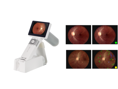 ジュリーアイは、AI関連技術であるディープラーニング(深層学習)を応用して、ライアンスコープ等で撮影した眼底写真から白斑や出血等の症状(*3)を検出し、その結果により経過観察を目的とする検査や専門医による精密検査等の受診を推奨する機能があります。