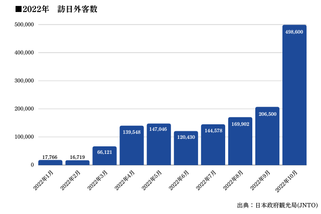 今後コロナ収束や円安の加速によって、訪日外国人数はさらなる増加が予測されています。