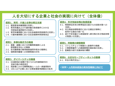 当連合会は、『「人を大切にする企業」づくりから「人を大切にする社会」の実現』をコーポレートメッセージに様々な活動を展開しており、本件は多様で柔軟な働き方の創造、導入及び浸透を目的に、働き方改革の専門家としての実務・知見に基づいた提言及び宣言を行うものである。