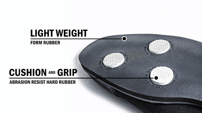 アウトソールには歩行時の動きに基づいて設計された〈ADVANCED SOLE(アドバンスドソール)〉を採用。軽量かつ衝撃吸収性に優れた発泡ゴムをベースに、耐摩耗性の高い硬質ゴムを適所に配置。クッション性とグリップ性を同時に備えているのが特徴です。特にかかと部分には摩耗に耐える素材配合になっています。水はけがよく、雨の日のはき心地も快適です。