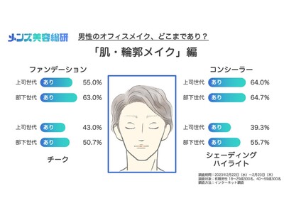 そこで今回「メンズ美容総研」では「男性のオフィスメイク」に関する意識・実態調査を実施。部下世代(18~29歳)と上司世代(40~59歳)の男性を対象に、ビジネスシーンでのメンズメイクについての「あり」「なし」を調査しました。
