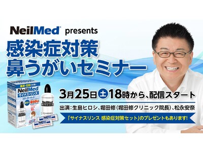 医療機器メーカーのニールメッド株式会社 (所在地:東京都千代田区、代表取締役:唐木 佑介)は、「鼻うがい」をより多くの人々に知ってもらい、花粉症・感染症対策として日々の習慣に取り入れてもらいたいという想いから、鼻うがい愛好家である生島ヒロシさんと、鼻うがい第一人者である堀田修クリニック院長によるトークイベントを開催いたします。