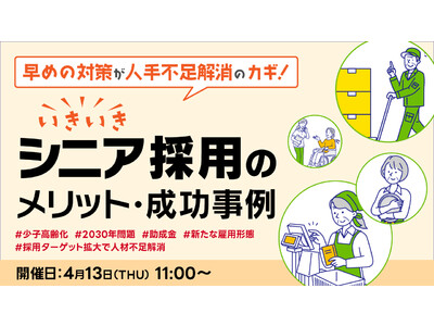 企業のオウンドメディアリクルーティングを支援する株式会社天職市場(本社:東京都新宿区西新宿、代表取締役:春名 敬太)は、2023年4月13日(木)に社員採用担当者向けオンラインセミナー『早めの対策が人材不足解消のカギ!シニア採用のメリット・成功事例』を開催いたします。