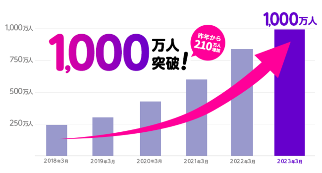 電子書籍をはじめとしたコンテンツの販売・配信サービスのご利用ユーザーが2023年3月に1,000万人を突破したことをご報告いたします。