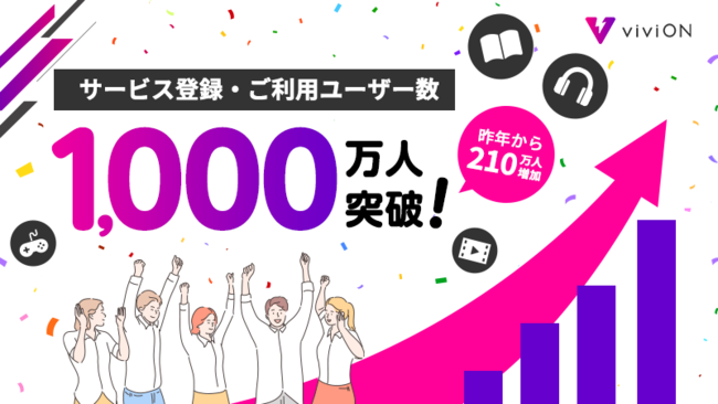 株式会社viviON(所在地:東京都千代田区、代表:明石耕作)をはじめとするviviONグループは、2023年3月にグループの手掛けるコンテンツ販売サービスのご利用ユーザーが1,000万人を突破したことをご報告いたします。