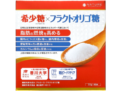本製品は日本で初めて、希少糖(アルロース)とフラクトオリゴ糖の組み合わせて、機能性表示食品として受理されました。