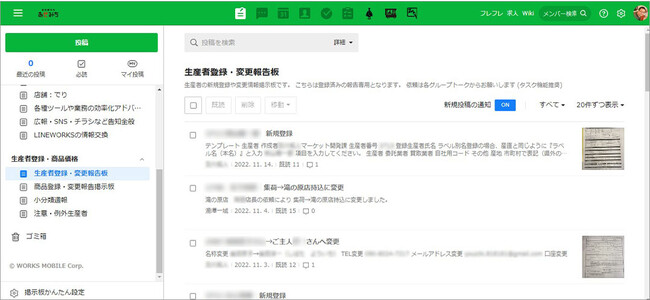生産者に関する情報管理を「LINE WORKS」の掲示板とノート機能で共有