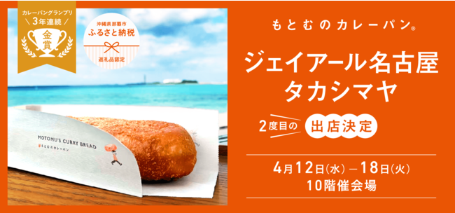 実践型ブランディング会社である株式会社アンド・フォース (本社:東京都千代田区麹町、代表取締役 瀧口 幸明)が運営する、沖縄初のカレーパングランプリ3年連続金賞受賞の焼きたてカレーパン専門店「もとむのカレーパン」は、 2023年4月12日(水)~4月18日(火) の7日間限定で、ジェイアール名古屋タカシマヤに期間限定出店します。