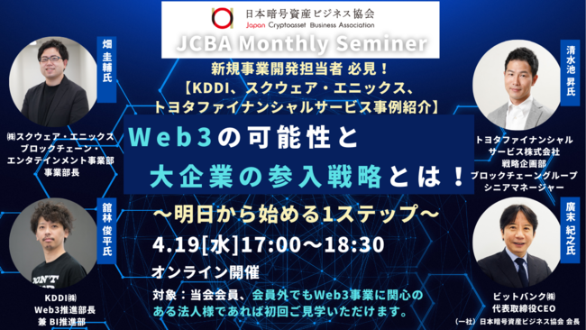 JCBA 4月勉強会 【新規事業開発担当者向け】ウェビナー「Web3の可能性と大企業の参入戦略とは! ~明日から始める1ステップ~」