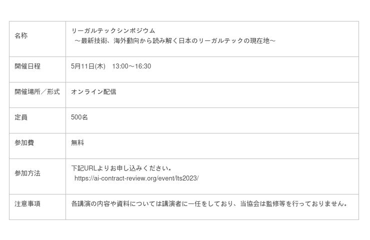 AI・契約レビューテクノロジー協会主催「リーガルテックシンポジウム」概要