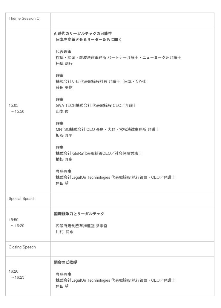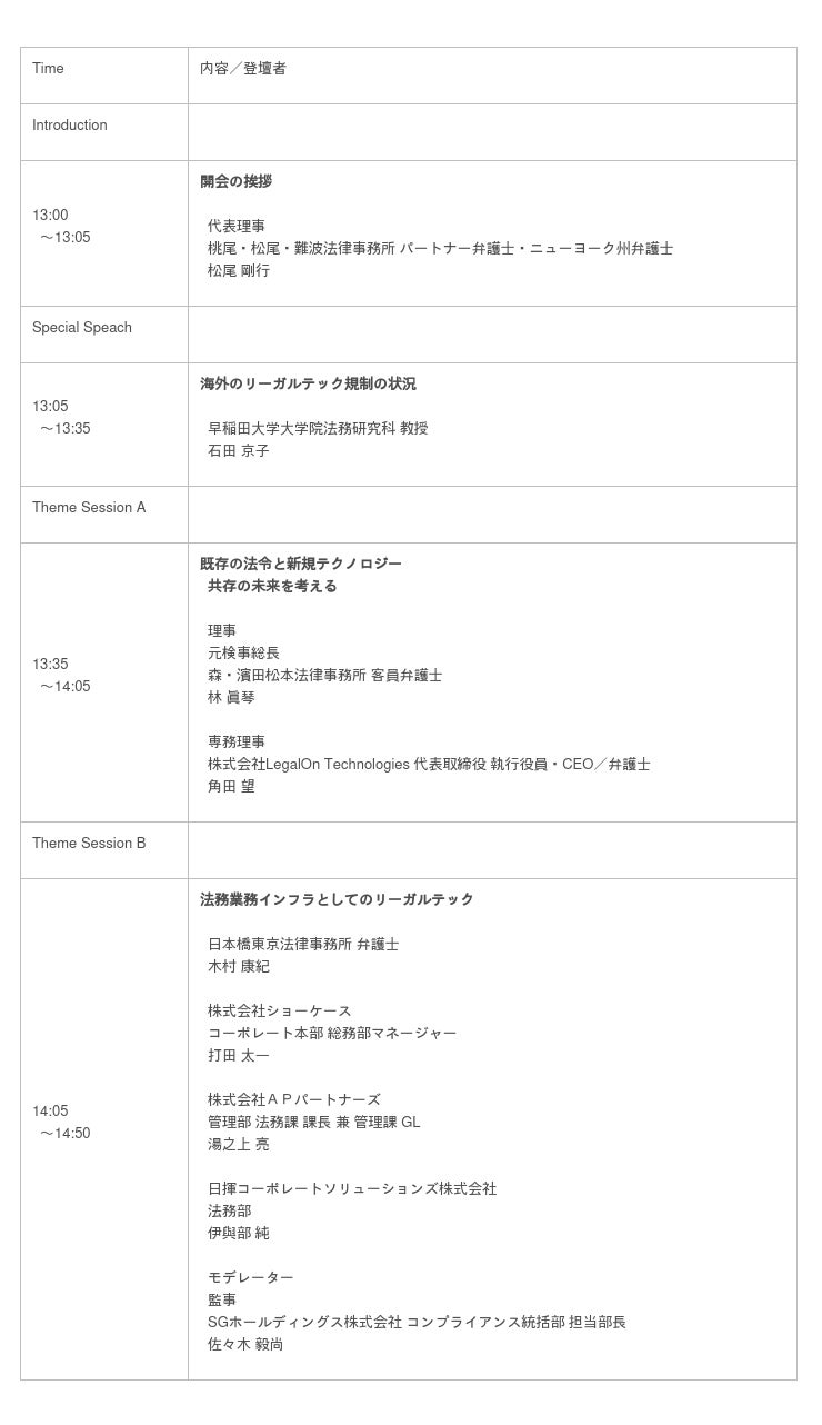 「リーガルテックシンポジウム」タイムテーブル