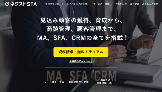 「ネクストSFA」は、見込み顧客の情報から商談履歴、さらに案件成立後の顧客対応状況までの一連の営業プロセスを見える化して効率的な管理を可能にするクラウド営業支援ツールです。ユーザーにとっての見やすさと使いやすさを重視した設計で、短期間かつ低コストで容易に導入することができます。