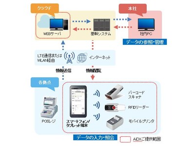 店頭端末にスマートフォンやタブレット型端末を利用し、バーコードスキャナやRFIFリーダと組み合わせて使用することで、売上管理や在庫管理などの業務を低コストで実現するためのシステムです。