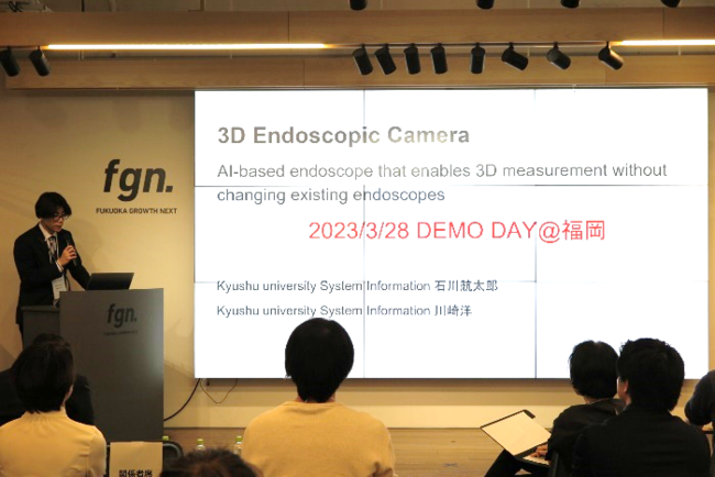 ・石川航太郎氏(九州大学工学部システム情報 川崎研究室):超小型センサーを取り付けることにより、撮影した胃や腸の映像を3Dで再現できる内視鏡の開発。