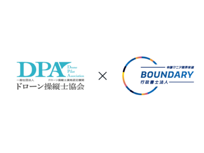 ドローンの民間操縦資格認定事業を展開する一般社団法人 ドローン操縦士協会(略称:DPA=ディーパ)(本社:東京都、代表理事:吉野 次郎)は、ドローンの許認可申請と法務顧問を専門とするバウンダリ行政書士法人(本社:宮城県、代表行政書士:佐々木 慎太郎)と提携し、DPA認定資格であるドローン操縦士回転翼3級資格所有者に対して飛行申請などの代行サービスを特別価格で提供することに合意しました。