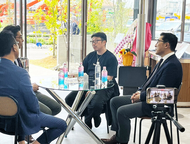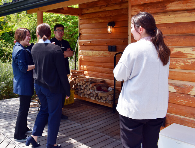 ■オープンゲストとして「ととのえ親方」もご来店!サウナー界のカリスマ、ととのえ親方こと松尾大氏もSUNNY SIDEのオープンに合わせてご来店いただきました。サウナに対する熱い思いを武雄市長 小松 政様、株式会社バーグマン代表取締役社長 笠間 聖司様、朝日I&Rホールディングス株式会社 代表取締役 野畑 ⿓彦4人で対談をおこないました。サウナ事情や施設の今後の普及についてなど語っていただき、とても有意義な時間となりました。対談後は、朝日I&Rホールディングス株式会社の社内にあるサウナをご覧いただきました。