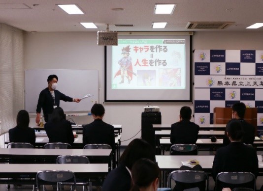 ■熊本県立上天草高等学校この度は、本校生徒に対し、SDGs特別講座を開講していただきましたこと心より御礼申し上げます。未来を切り拓くリーダーの育成に取り組む本校にとって、SDGsおよびキャラクターデザインを通じて表現する楽しさや喜びを学び、社会に参画する大切さも一緒に学べたと感じております。今後も本校の教育活動に対するご支援とご協力をよろしくお願い致します。