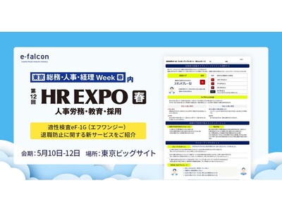 業界最多の測定項目でタレントマネジメントに活用できる適性検査『eF-1G(エフワンジー)』を提供する株式会社イー・ファルコン(本社:東京都中央区、代表取締役社長:田中伸明)は、2023年5月10日(水)~12日(金)に開催予定の日本最大のバックオフィス向け展示会『第12回HR EXPO 春』に出展することをお知らせします。