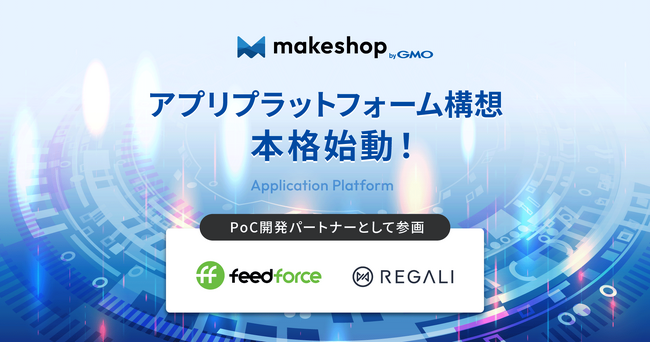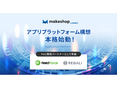 https://www.makeshop.jp/main/lp/next_ec/)を2020年に始動し、その一環として、アプリプラットフォーム構想を立ち上げました。フィードフォースは、データフィード、構造化データ、ID連携といったテクノロジーを駆使したマーケティング支援サービスを展開し、一方REGALIは、動画・UGC・スタッフ投稿などあらゆるコンテンツをECサイトへ連携する顧客体験向上プラットフォーム「LEEEP」を展開しています。両社は、広告やコンテンツの活用によりEC事業の成長を加速させるサービスを提供していること、また、これまでにもEC事業者向けアプリの開発実績を有していることから、GMOメイクショップは、PoC開発パートナーとしての参画を依頼いたしました。