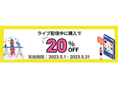 5月1日~31日の期間、ライブ配信中に商品をご購入いただいた方限定で商品購入額の20%をキャッシュバックいたします。