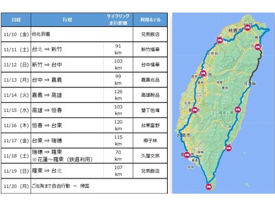 株式会社ジャイアントは、2023年11月11日から19日まで台湾全土で開催される国家的規模の環島サイクリングイベント「2023 FORMOSA 900」に、日本人サイクリストが「日本騎士團」として公式参加できるツアーを開催いたします。コロナ禍を経て4年ぶりとなります今回のツアーは、台湾1周約900Kmを9日間で環島する公式日程に、前後1日ずつの移動日を加えた全11日間となります。