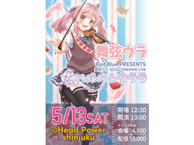 バーチャルワールドと現実世界を行き来するアーティストチーム『Riot Blue』は、4/8に誕生日を迎えた『舞弦ウラ』をメインアクトに据え、”リアル”ライブ【ハルハレウララ】を開催いたします。