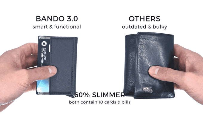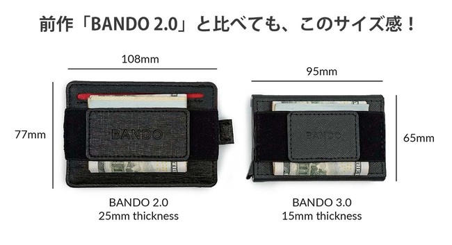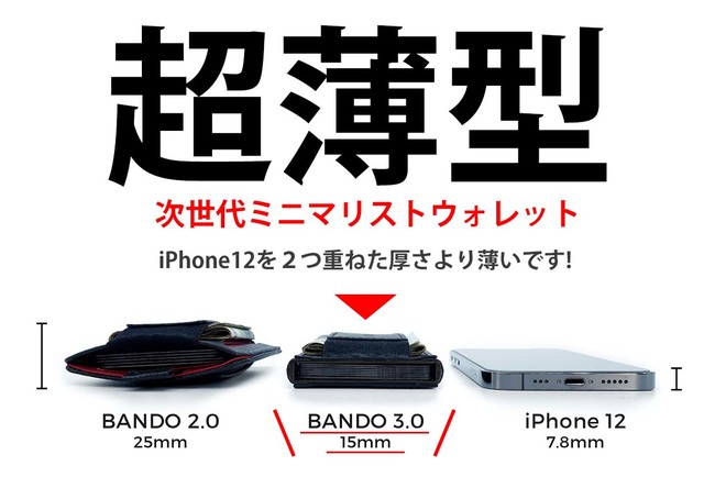 「15mm」という薄さで、かさばらない『BANDO 3.0』はキャッシュレス決済主流の時代にピッタリなお財布!マネーバンドとカードケースが1つになったスタイリッシュなデザインでECサイトでも大人気!