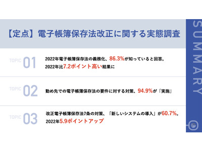 2022年電子帳簿保存法の義務化について、86.3%が「認知」、2022年比7.2ポイントアップ