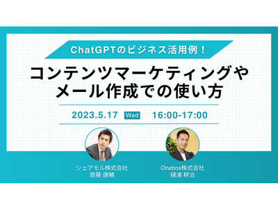 シェアモル株式会社(本社:東京都墨田区、 代表取締役:齋藤 康輔)は、2023年5月17日、ChatGPTのビジネス活用例!コンテンツマーケティングやメール作成での使い方というタイトルで共催ウェビナーを開催いたします。