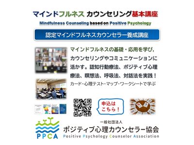 一般社団法人 ポジティブ心理カウンセラー協会(本部:東京都港区)が主催する、2023年6月17日(土) 及び18(日) 9:30~ 17:30(2日間・両日)までオンライン・ワークショップにて,【マインドフルネスカウンセリング基本講座2023」を開催いたします。
