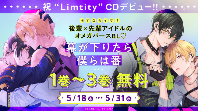 BLコミック『幕が下りたら僕らは番』(著者:ざらめ鮫)に登場するアイドルユニット“Limtity”がCDデビューすることが決定しました。デビュー曲「EDGE」は7月7日(金)に発売となるドラマCDに収録されるほか、各種音楽配信サイトおよびカラオケ「JOYSOUND」にて配信されます。