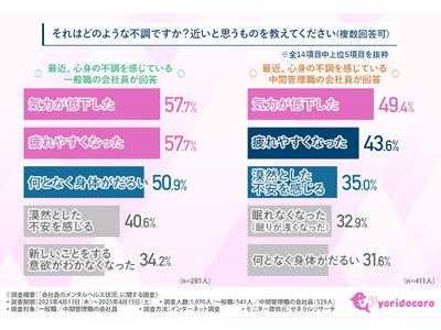 中間管理職では7割以上、一般職では5割以上が心身の不調を感じたことがあると回答!