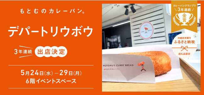 実践型ブランディング会社である株式会社アンド・フォース (本社:東京都千代田区麹町、代表取締役 瀧口 幸明)が運営する、沖縄初のカレーパングランプリ3年連続金賞受賞の焼きたてカレーパン専門店「もとむのカレーパン」は、 2023年5月24日(水)~5月29日(月) の6日間限定で、沖縄唯一の百貨店デパートリウボウが6階イベントスペースで開催する「おいしいパンとコーヒー」に3年連続で出店します。