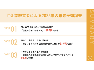 IT企業経営者の65.3%が、AIの台頭によって「企業の存続にも影響を与える」と回答