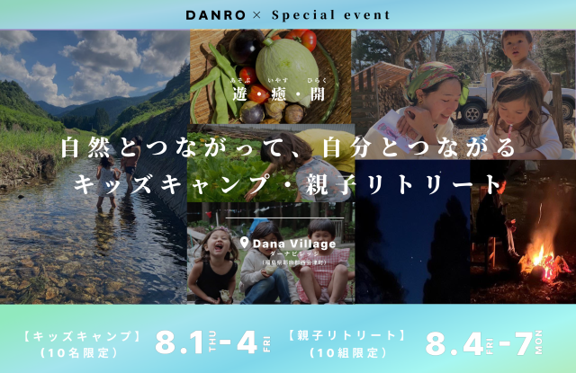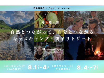 実践型対話スクール「DANRO」を運営するDANRO株式会社(本社:愛知県名古屋市、代表:棚橋浩之 小原和花)が2023年8月、子どもと親子に向けた「自然とつながり、自分とつながる キッズキャンプ・親子リトリート」の募集を開始しました。