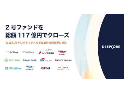 AI特化型ベンチャーキャピタル(VC)である株式会社ディープコア(DEEPCORE)は、シード・アーリーステージのAIスタートアップへの投資を目的とした2号ファンド「DEEPCORE TOKYO2号(正式名称:DEEPCORE TOKYO 2号投資事業有限責任組合)」を、総額117億円でファイナルクローズいたしました。2号ファンドでは、Generative AIやロボティクスなど先進的技術分野に重点的に投資する予定です。
