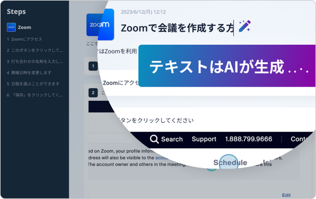 ManualForceはWEBブラウザ上での操作を自動記録し、マニュアル化・シェアすることができるサービスです。ManualForceに実装されている「AIサジェスト」はChatGPT APIを活用した機能であり、作成したマニュアルのタイトルや説明文を自動生成する機能になります。これによりManualForceが従来提供するマニュアル作成の工数削減をさらに強化する形となりました。