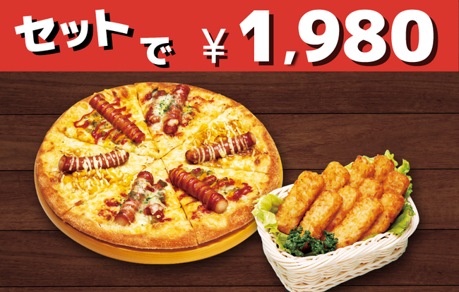 ピッツァドッグトリプルMサイズとハッシュドポテトのお得なセットです。
