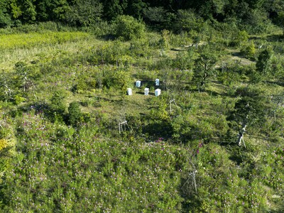 特別な歴史があり、豊かな自然に恵まれた場所「神宮神田」。訪れてすぐにこの地に HACCI『ミツバチの楽園』を作りたいと強く願いましたが、当初その土地は空いていませんでした。ですが、出会いからわずか数日後。地主の方から、土地が空いたという連絡が入りました。さらに紐解いていくと、先々代の水谷清一と、先代の水谷忠夫が、まさに同じ場所に巣箱を置いて養蜂し、近所の方にハチミツを渡していたことが発覚。そんな運命的な巡り合わせのある場所に、楽園が誕生しました。