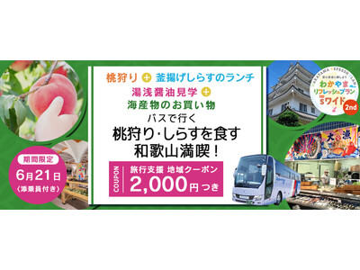 株式会社フォーティーズ(本社:大阪市鶴見区、代表取締役 岡武史)は6月21日(水)限定《全国旅行支援》 〈添乗員付き〉桃狩り+釜揚げしらす御膳+漁協直営市場でお買い物 バスで行く 『みんなで桃狩りに行こう』日帰りバスツアーのオンライン販売を開始しました。