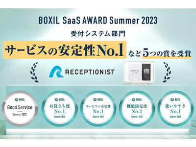 株式会社RECEPTIONIST(本社:東京都渋谷区、代表:橋本真里子)が提供するクラウド受付システム「RECEPTIONIST」は、スマートキャンプ株式会社(以下「スマートキャンプ」)が主催する「BOXIL SaaS AWARD Summer 2023」の受付システム部門で「Good Service」と、「サービスの安定性」「機能満足度」「お役立ち度」「使いやすさ」でそれぞれNo.1に選出されました。