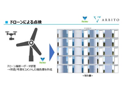 V-farms株式会社(本店:青森県つがる市)とアルビト株式会社(本店:東京都中央区)は風車のタワー部分に特化した点検サービスを提供しております。