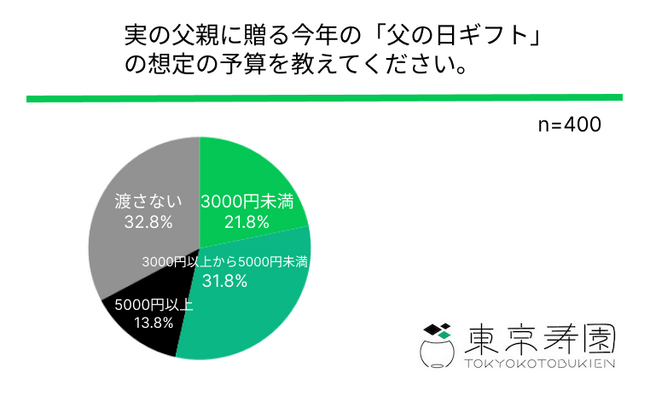 実の父親に贈る今年の「父の日ギフト」の想定の予算「3000円以上から5000円未満」が