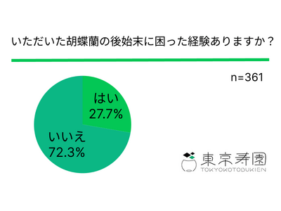 「いただいた胡蝶蘭の後始末に困った経験ありますか?」という質問に「はい」と回答した方は27.2%、「いいえ