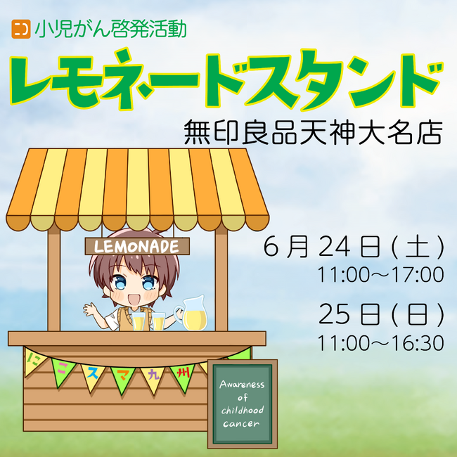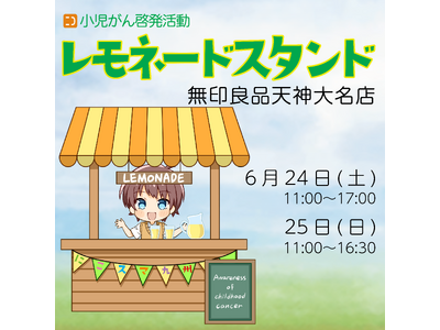 認定NPO法人にこスマ九州(福岡市、代表理事:白石恵子)は6月24日(土)、25日(日)に無印良品 天神大名(福岡県福岡市中央区大名1-15-41)で小児がん啓発活動としてレモネードスタンドを開催します。