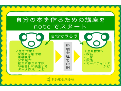 M3WE合同会社(本社:東京都中央区、代表:盛田 祐代)では、本日よりnoteにて本を自分で企画・制作・出版するためのノウハウ講座を開始します。これまで「本を作ってみたいと思ったけど自分で作る方法がわからない」という方や、「執筆活動が好きでさまざまなコンテストに応募しているけど入賞できず書籍化されないので、この際だから自分で作ってみよう」という方に役立つコンテンツです。