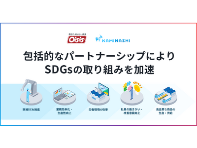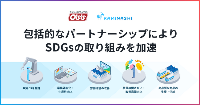 2023年6月に、創業75周年を迎える株式会社オイシス(本部:兵庫県伊丹市 代表取締役社長:池野 正明、以下「オイシス」)は、社会を構成する一員として、SDGsの取り組みをさらに進め、ごみ削減とより安定した安心安全な商品の提供、従業員の労働環境改善に向けた取り組みを進めています。その取り組みの中核となるDX施策において、現場DXプラットフォーム『カミナシ』を提供する株式会社カミナシ(本社:東京都千代田区、代表取締役CEO:諸岡 裕人、以下「カミナシ」)と、食品製造業界とカミナシとの初となるDXのためのパートナーシップ契約を締結しました。
