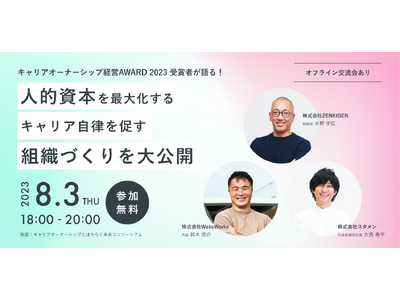 株式会社スタメン(本社:愛知県名古屋市 代表取締役:大西泰平 )は、キャリアオーナーシップ経営AWARD 「優秀賞(中小企業の部)」を受賞した株式会社ZENKIGEN 、株式会社WakuWorksと共に「人的資本を最大化するキャリア自律を促す組織づくり」をテーマにイベントを開催します。